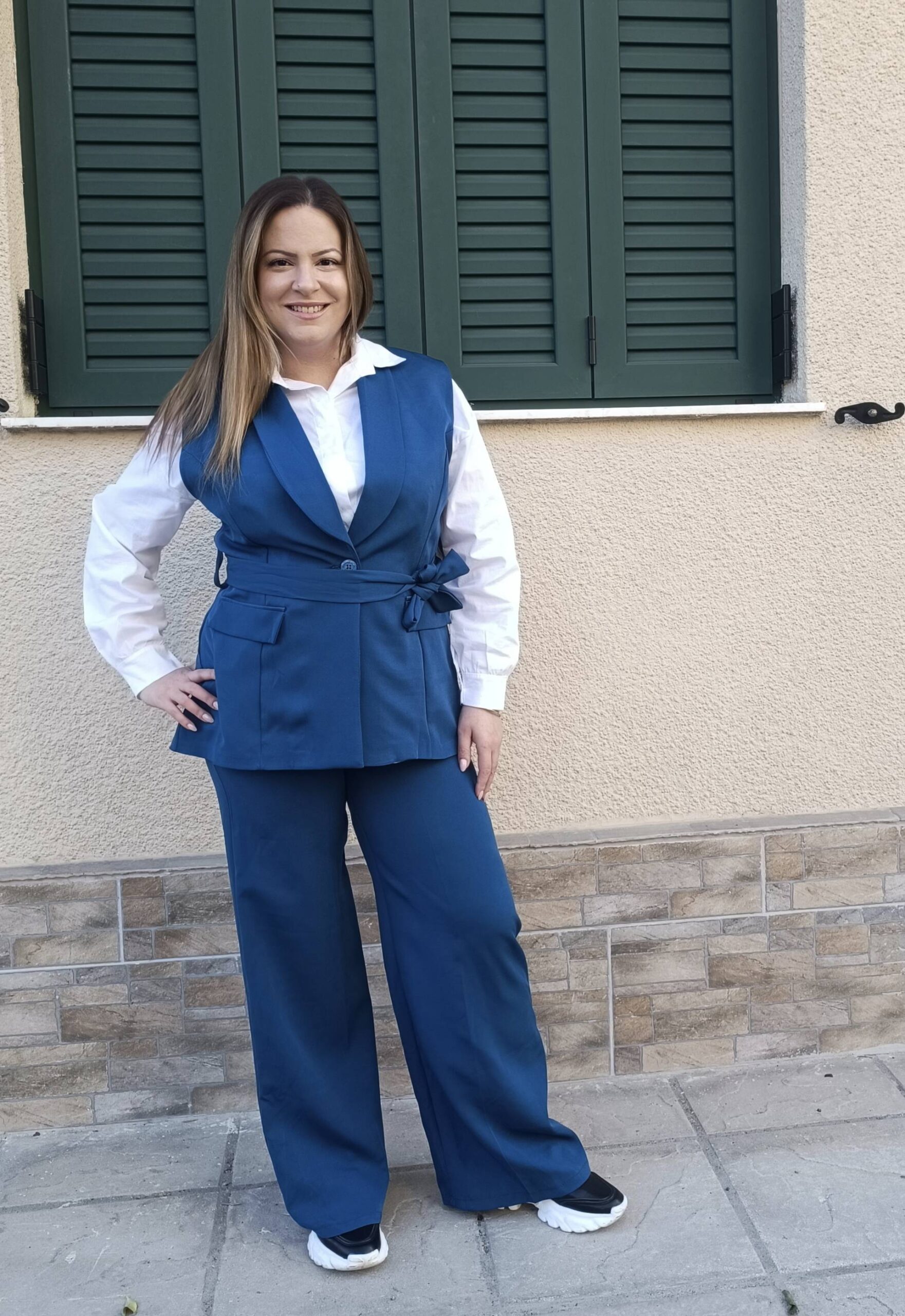 ✅ Μακρύ γιλέκο που κλείνει μπροστά με κουμπιά και διαθέτει δική του ζώνη .